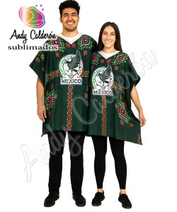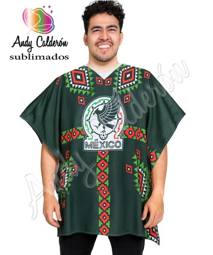 Poncho o Jorongo sublimado FullPrind, tela 100% poliéster cuello V con bies
