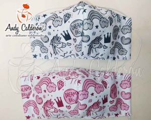 Cubre bocas hecho con tela dry-fit antibacterial, con capa de pellón y protección de forro nonwomen, que evita el traspaso de líquidos y fluidos. Con una sublimación de nuestros diferentes diseños que pueden ser lavados con cloro y no perder su diseño.