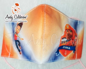 Cubre bocas hecho con tela dry-fit antibacterial, con capa de pellón y protección de forro nonwomen, que evita el traspaso de líquidos y fluidos. Con una sublimación de nuestros diferentes diseños que pueden ser lavados con cloro y no perder su diseño.