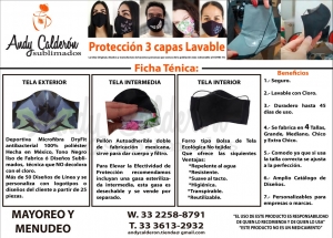 Cubre bocas hecho con tela dry-fit antibacterial, con capa de pellón y protección de forro nonwomen, que evita el traspaso de líquidos y fluidos. Con una sublimación de nuestros diferentes diseños que pueden ser lavados con cloro y no perder su diseño.