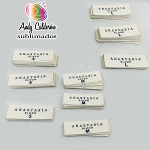 Etiquetas con corte cauterizado medida estandar de 1.6x7cm o de 1.9 cm