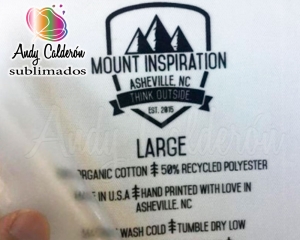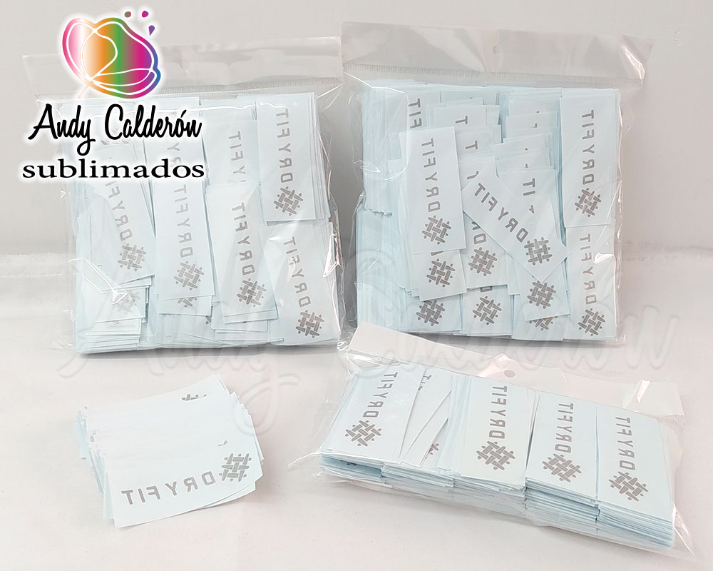 La etiqueta es TERMO ADHERIBLE y se adhiere a la prenda a una temperatura de 160° por un tiempo de 10 segundo.