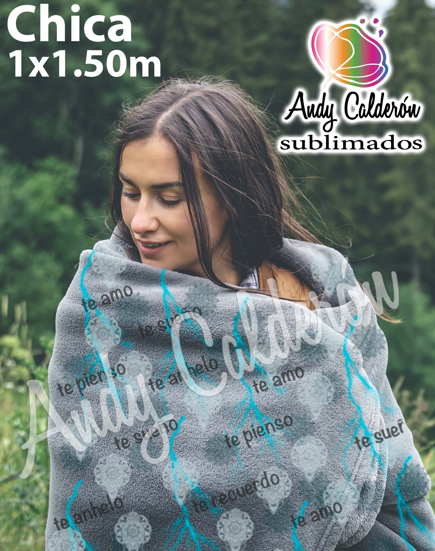 Frazada o Cobija personalizada CHICA medida tela 1x1.5 metros con dobladillo simple sublimado en 1 lado, tela polar ligera y cálida.