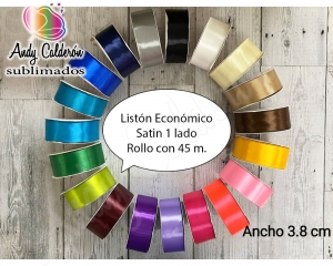 Rollo con 43 metros de Listón satinado 1 lado económico , impreso en serigrafía a 1 tinta ancho 9 (de 35 a 38mm) precio valido por Impresión en tinta Blanca o Negra.