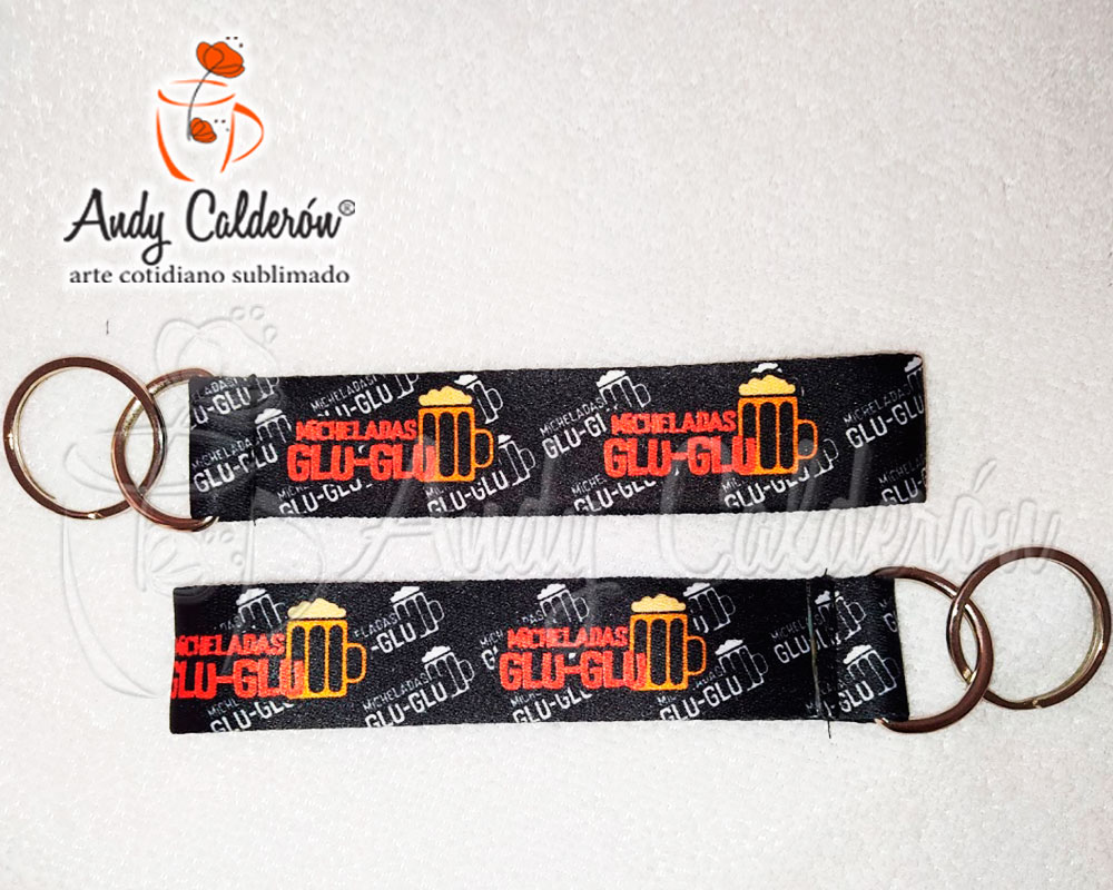 Llavero Fabricado en listón tipo Sarga Sublimada de 25 milímetros de ancho con doble argolla