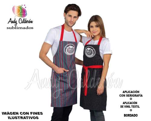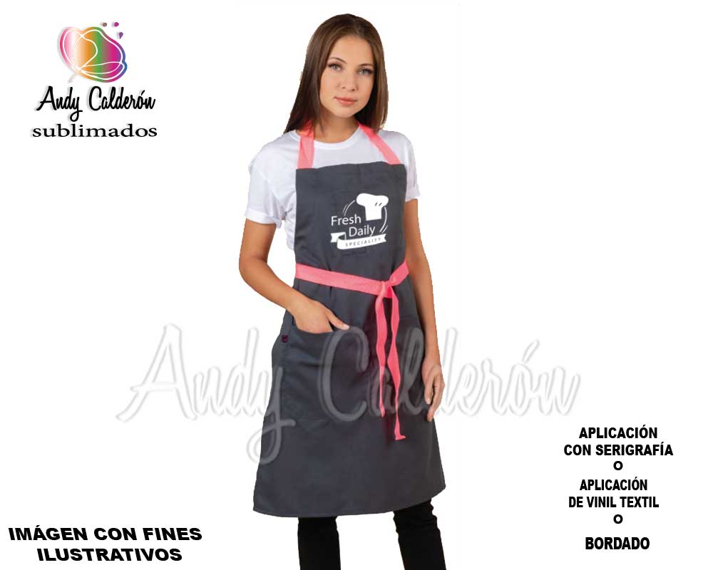 Mandil PLAYERYTEES largo, tejido gabardina, medida de 71 x 84 cms, repelente para líquidos, cinta ajustable al cuerpo, 2 bolsas al frente y 2 aberturas para plumas (lapiceros).