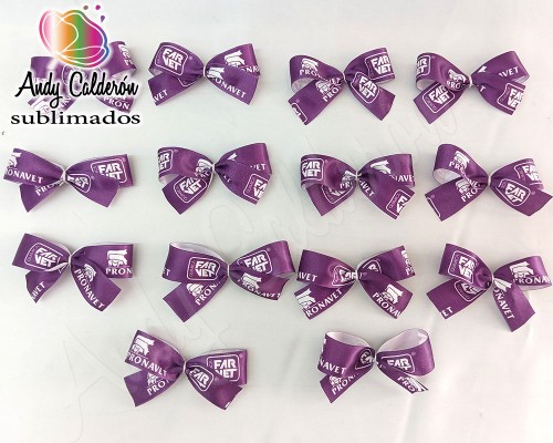 15 Moños personalizados fabricados en listón satín 100% poliéster con sublimación.