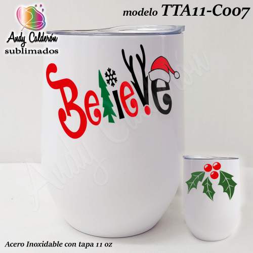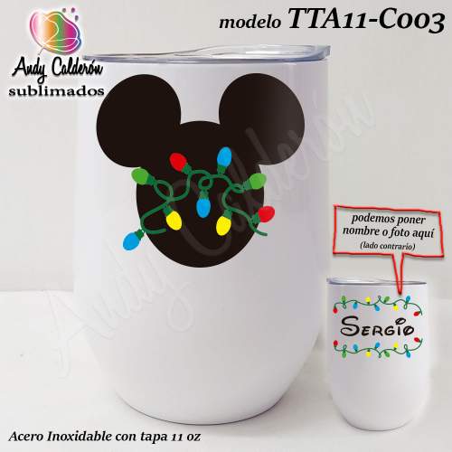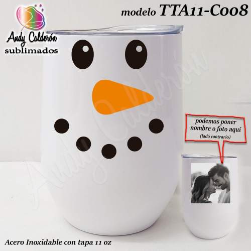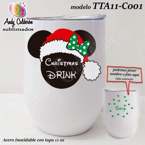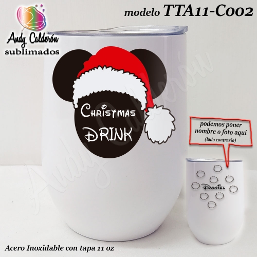 Vaso de Acero Inoxidable tipo Yeti con tapa que conserva calor o friotermo con motivos Navideños