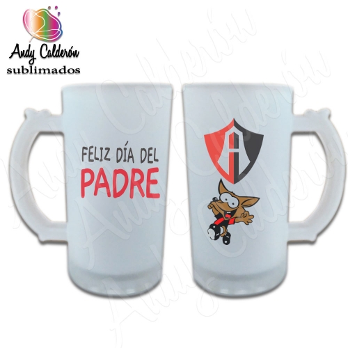Tarro Cervecero Vidrio Esmerilado SublimadoDiseño: Papá en honor a ATLAS