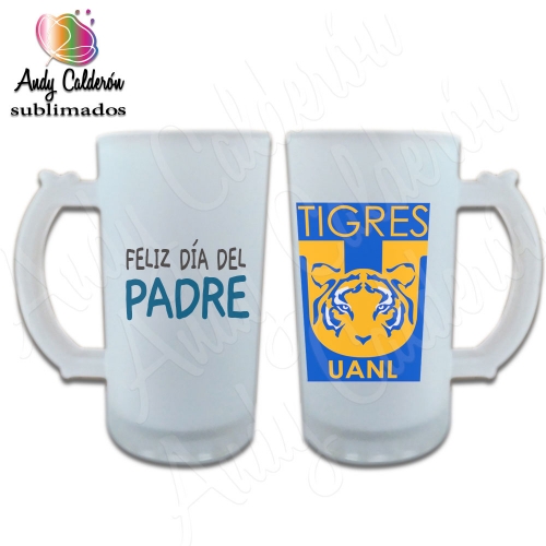 Tarro Cervecero Vidrio Esmerilado SublimadoDiseño: Papá en honor a Trigres