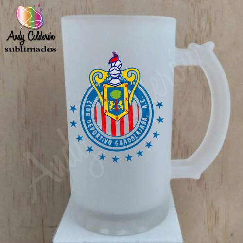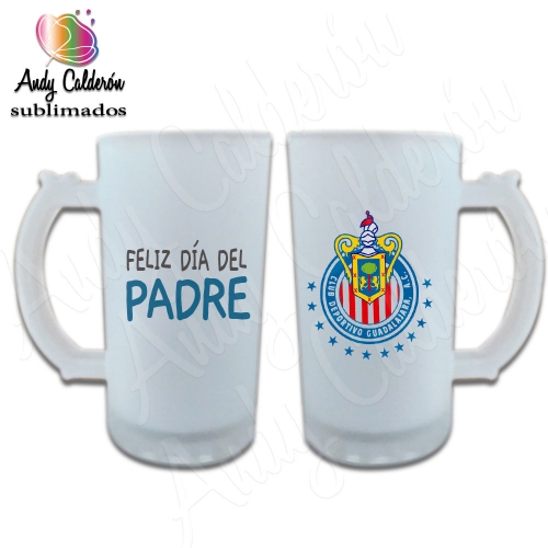 Tarro Cervecero Vidrio Esmerilado SublimadoDiseño: Papá en honor a Chivas