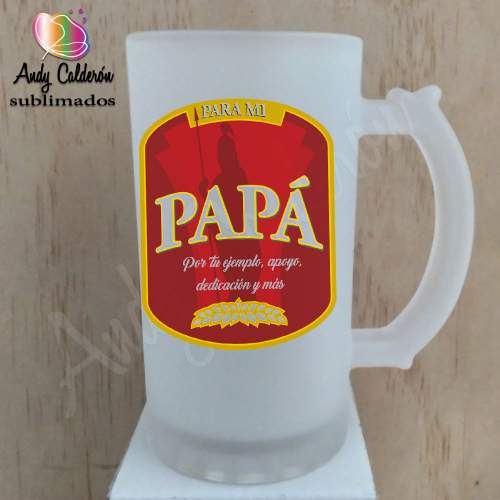 Tarro Cervecero Vidrio Esmerilado SublimadoDiseño: Papá en honor a america
