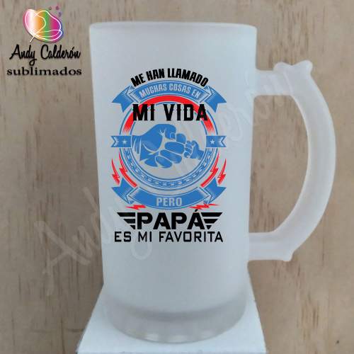 Tarro Cervecero Vidrio Esmerilado SublimadoDiseño: Papá Me han llamado