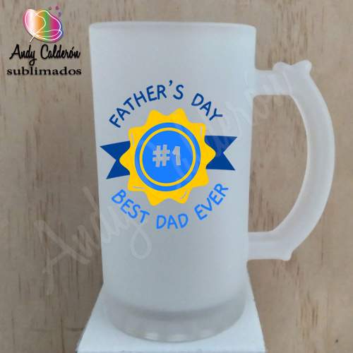 Tarro Cervecero Vidrio Esmerilado SublimadoDiseño: Medalla a Papá