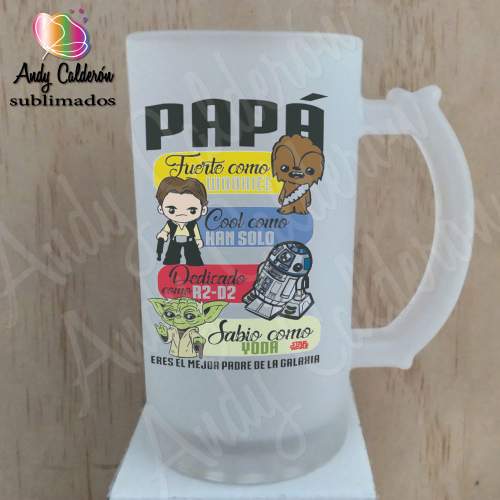 Tarro Cervecero Vidrio Esmerilado SublimadoDiseño: Papá en honor a star wars