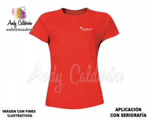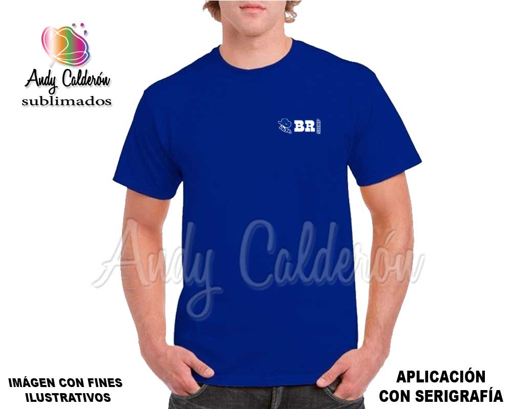 Incluye impresión en serigrafía al frente lado izquierdo de 9 x 9 cms y en la espalda de 20 x 26 cms mismo logotipo para todas las prendas (logotipo o diseño sencillo)
