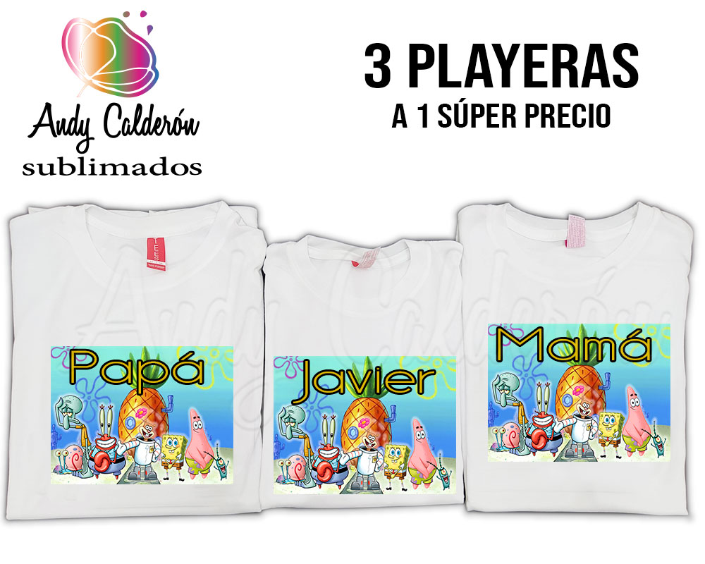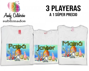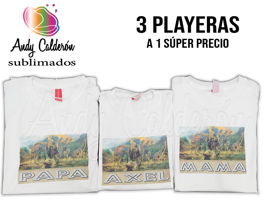 INCREIBLE PAQUETE DE PLAYERAS SUBLIMADAS KIT 1 CABALLERO, 1 DAMA Y 1 DE NIÑO