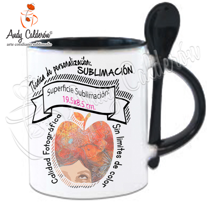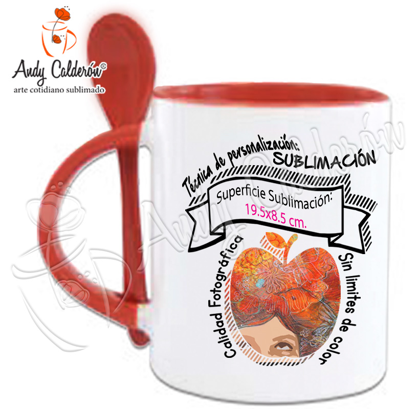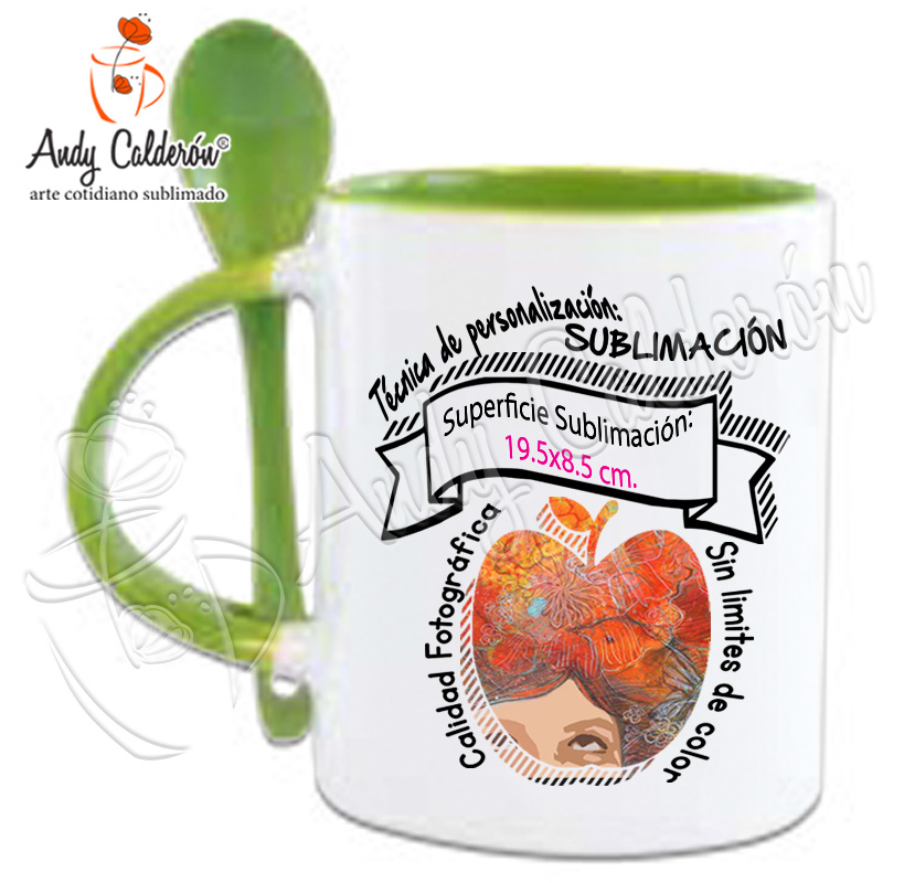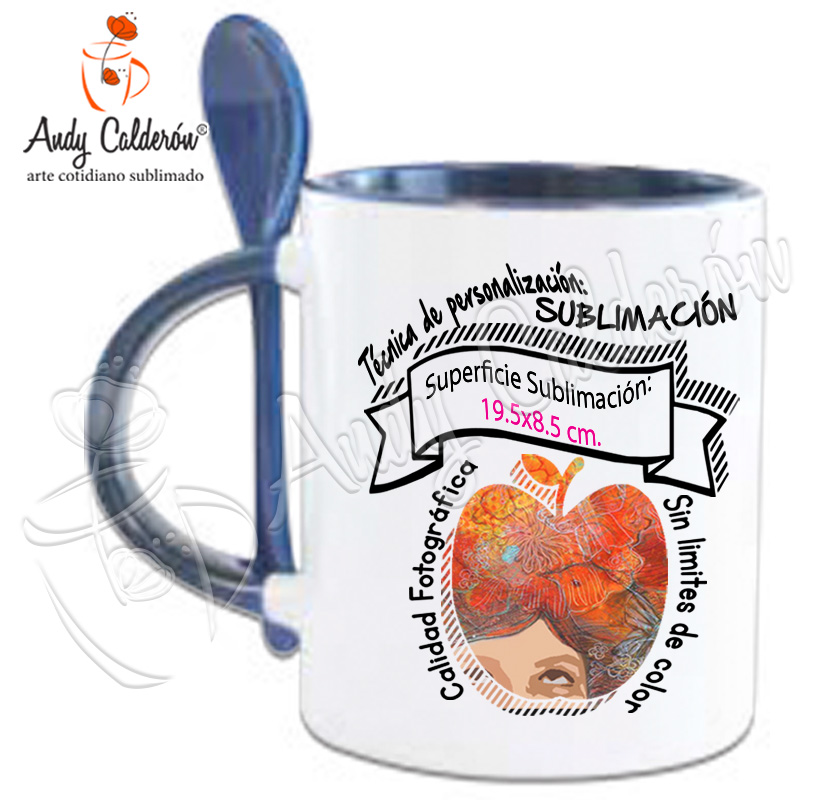 Descripción:Taza Cerámica Blanca Con Interior de color, asa y cuchara de color Sublimada Calidad "A".