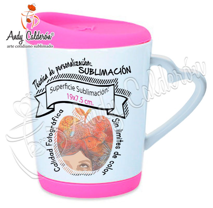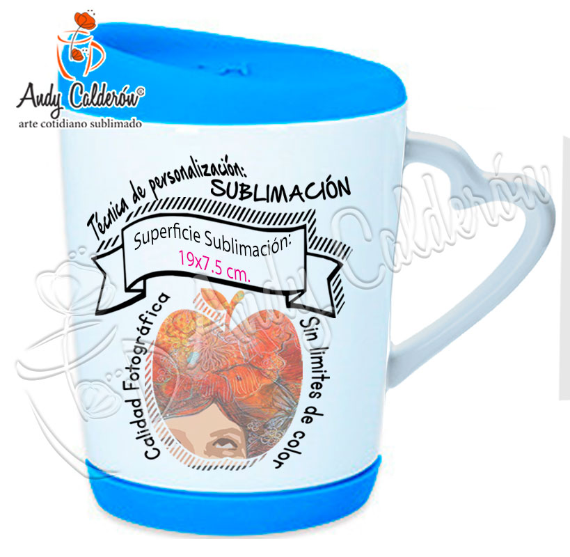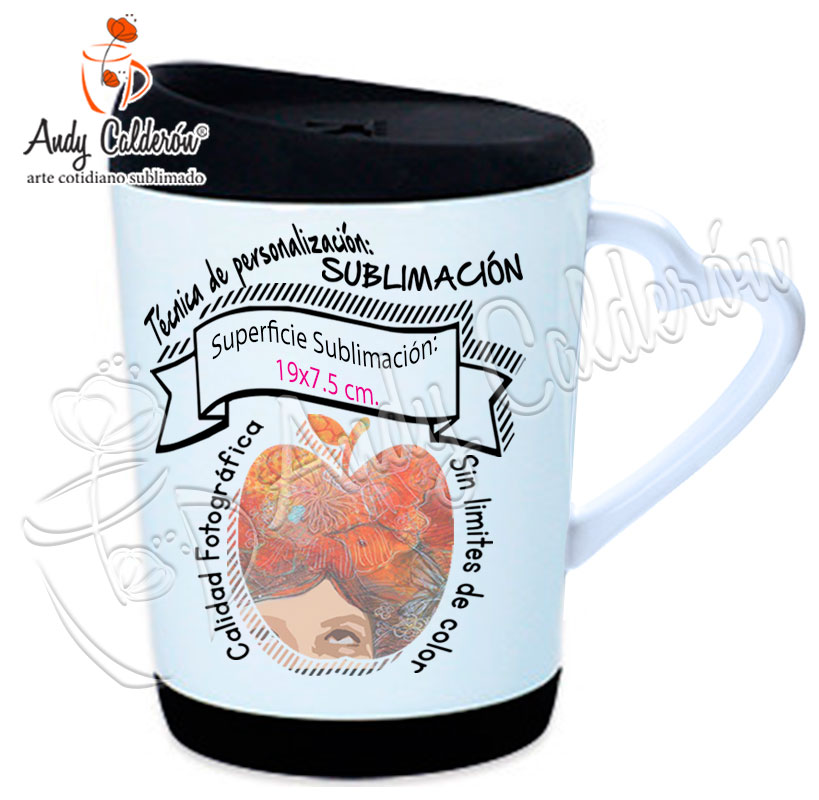 Descripción:Taza Cerámica Blanca con base y tapa de silicón, asa en forma de corazón