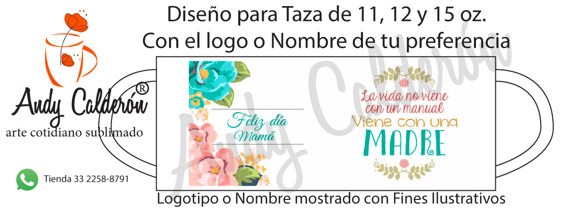 El diseño se adapta a cualquier de los modelos de tazas, Cilindro, Termo o ánfora de nuestra línea de productos sublimados.