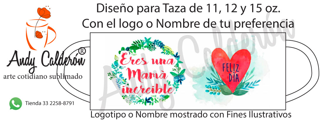 El diseño se adapta a cualquier de los modelos de tazas, Cilindro, Termo o ánfora de nuestra línea de productos sublimados.