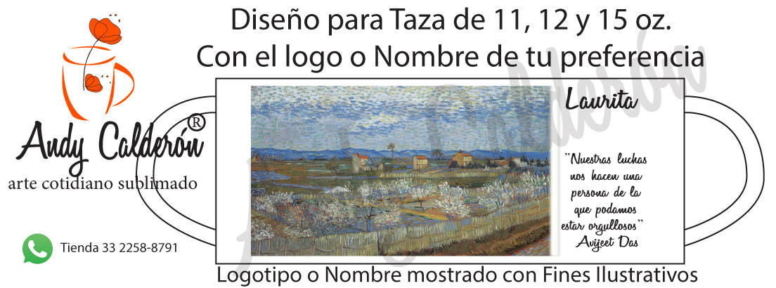 El diseño se adapta a cualquier de los modelos de tazas, Cilindro, Termo o ánfora de nuestra línea de productos sublimados.
