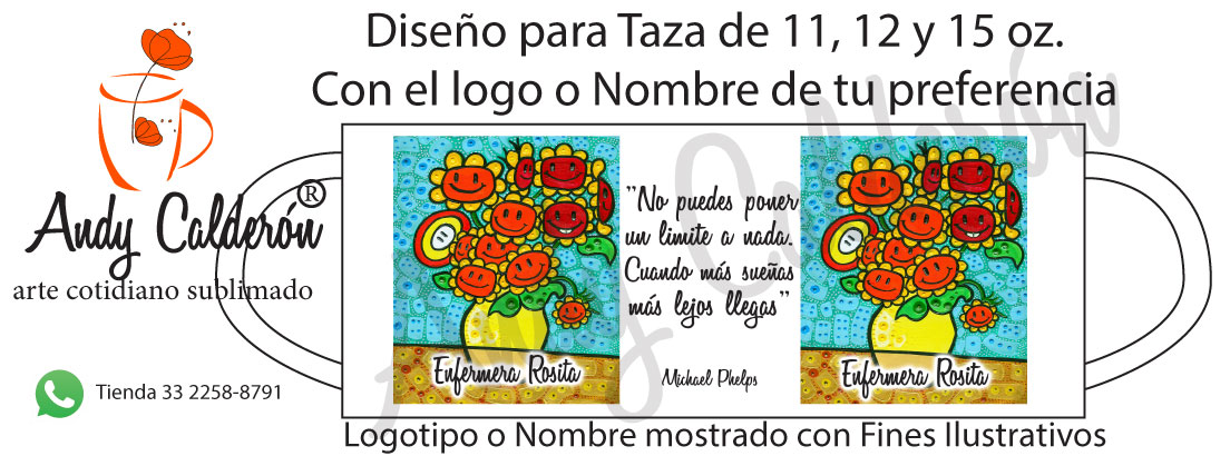El diseño se adapta a cualquier de los modelos de tazas, Cilindro, Termo o ánfora de nuestra línea de productos sublimados.