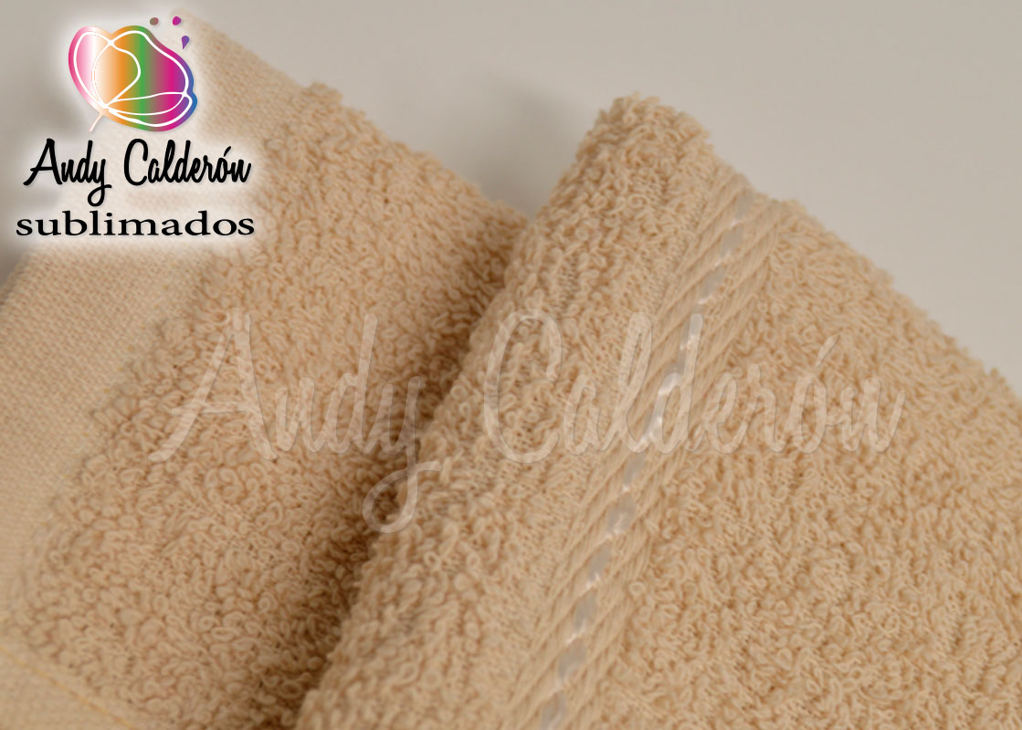 Incluye 1 Sublimación de listón poliéster de 16x30 cm cosido a la toalla en la parte de la cenefa.